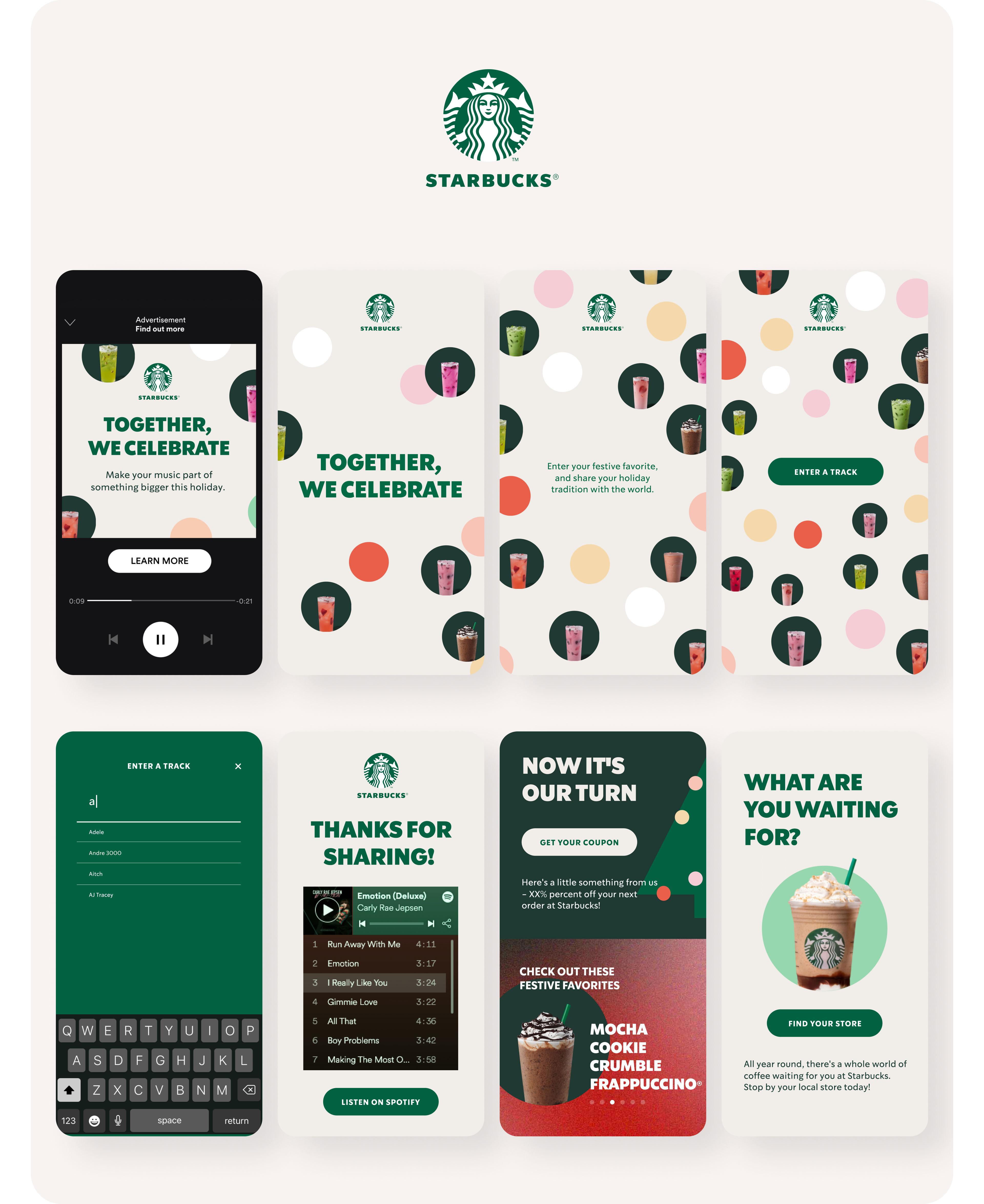 In this Christmas campaign concept for Starbucks, the idea is to unite people in the celebration by inviting users to add their favorite festive tracks to a large collaborative playlist.