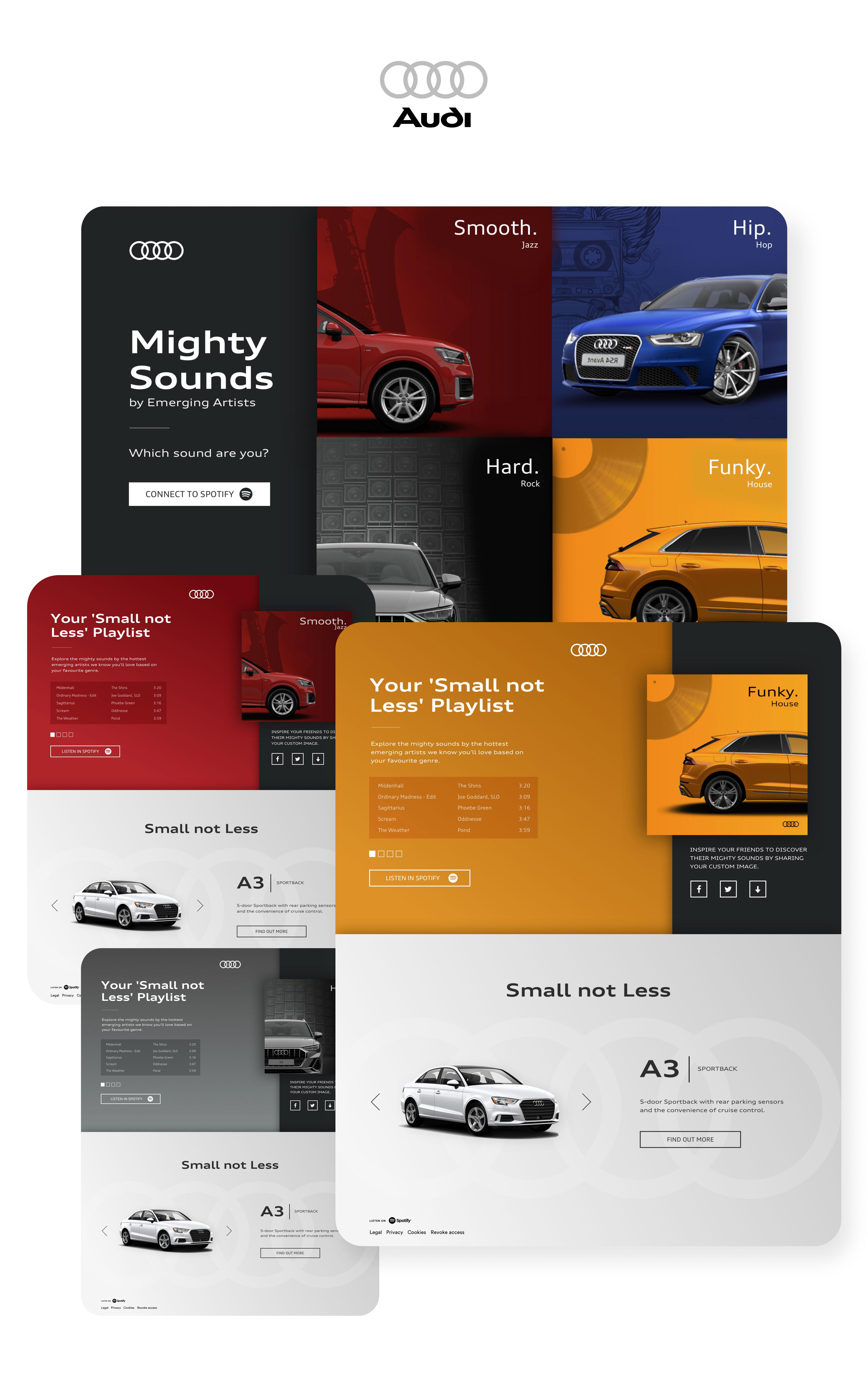 By connecting their Spotify account, users will be matched with one of the different colors of the Audi A3 based on their musical tastes. They will then receive a pre-curated playlist aligned with the key colors.
