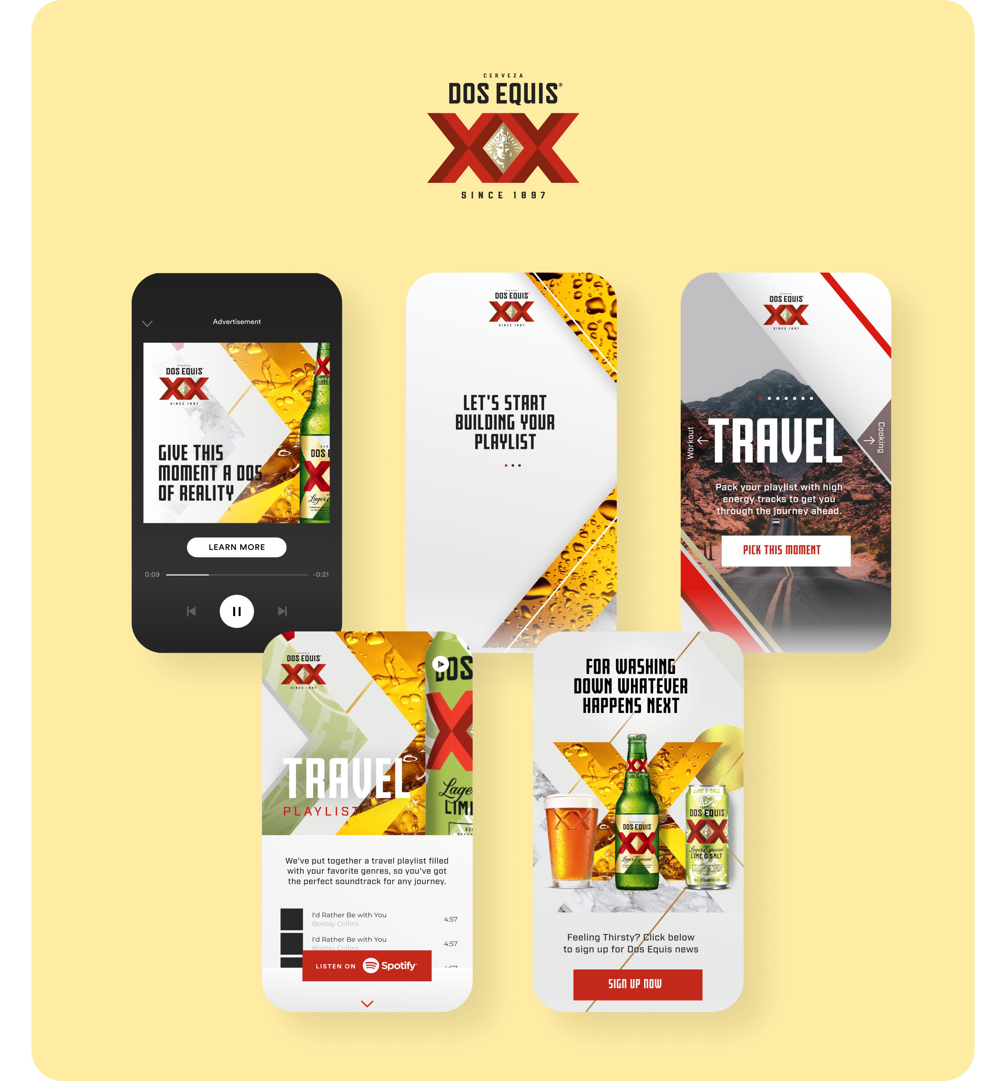 In this campaign for Dos Equis, users will choose their ideal moment to enjoy a Dos Equis beer. Based on the selected moment, users will receive a different playlist paired with a unique Dos Equis beer flavor.